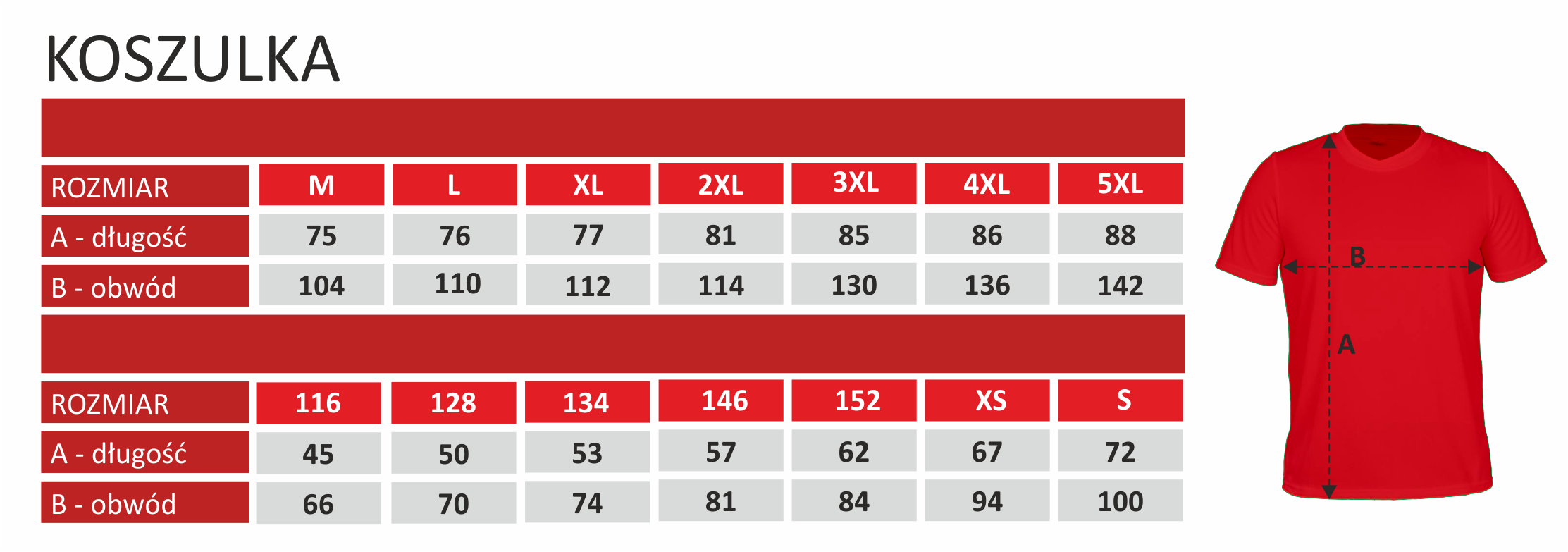 | Rozmiar | 116, 128, 134, 146, 152, XS, S, M, L, XL, 2XL, 3XL, 4XL, 5XL |