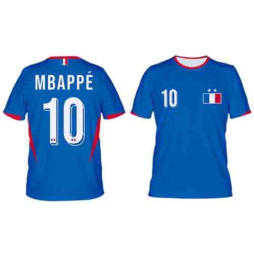 koszulka piłkarska z nadrukiem MBAPPE wykonana metodą sublimacji, kolory nieścieralne
