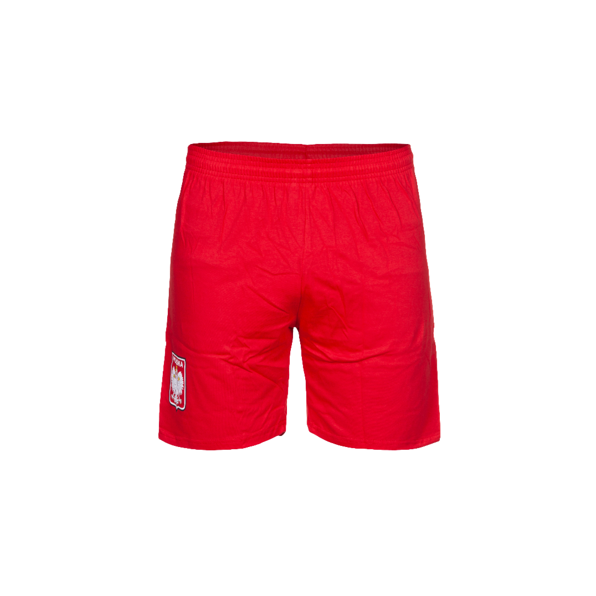 Spodenki Polska. Posiadają gumkę w pasie. Sznurek do ściągania. Spodenki w kolorze czerwonym.