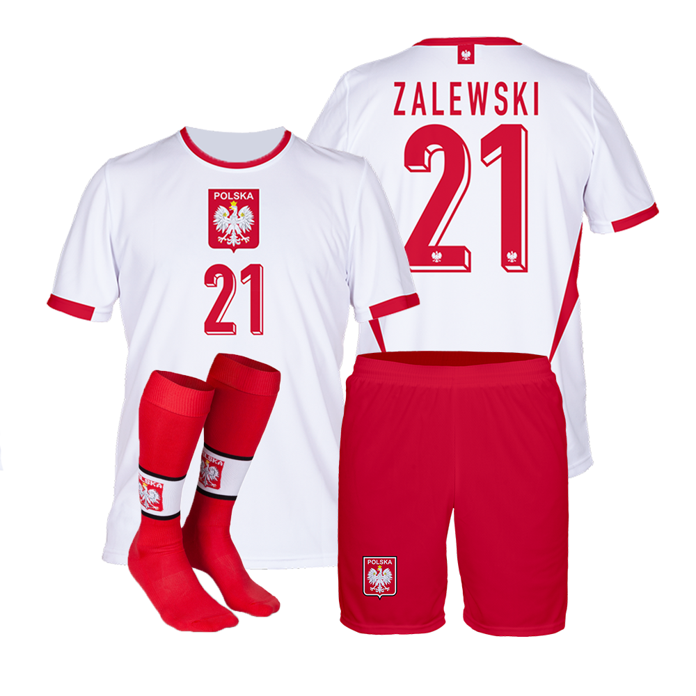 Strój piłkarski (koszulka + spodenki + getry) Zalewski Polska kolor biały.