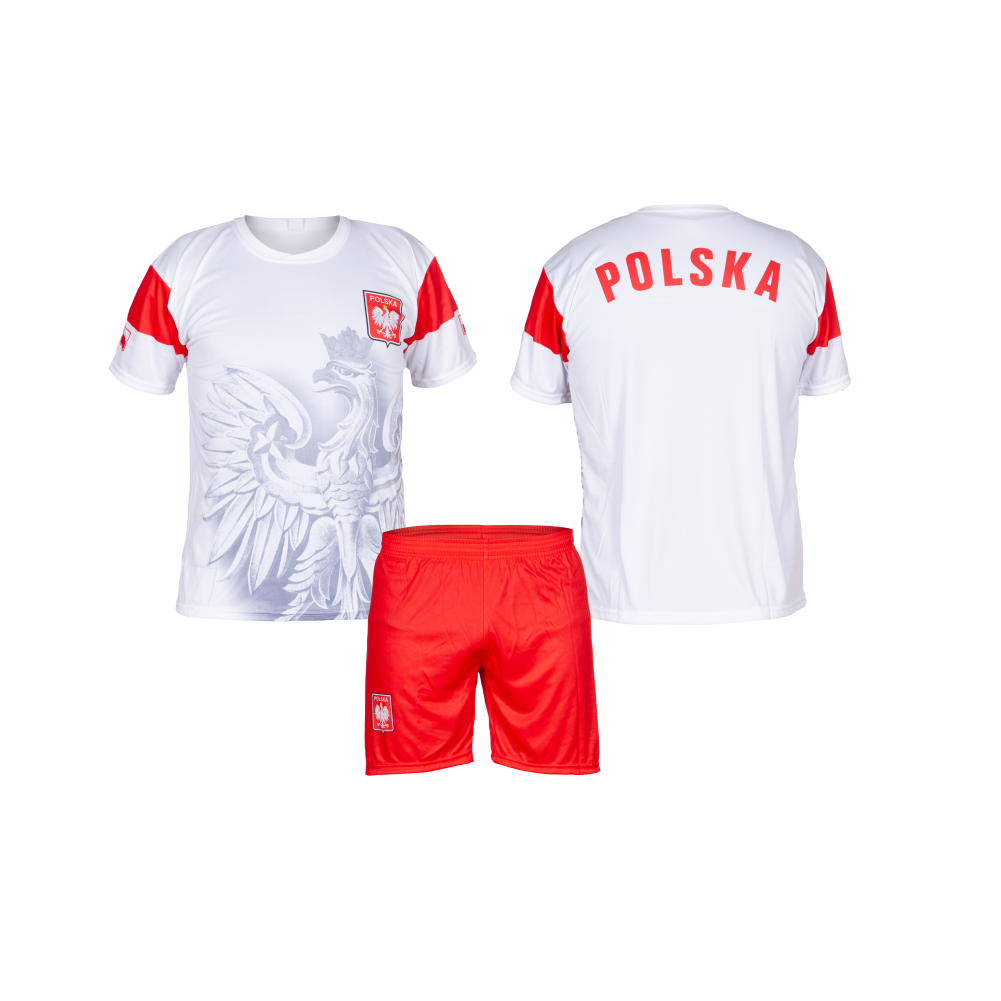 Strój piłkarski (koszulka + spodenki) Polska orzeł pikujący.